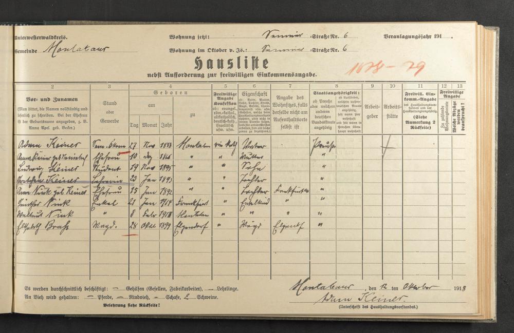 Keiner, Adam Keiner, Anna geb. Steinebach Keiner, Ludwig Keiner, Margareta Nink, Anna Magdal., geb. Keiner Nink, Günther Nink, Waltrud Braß, Elisabeth