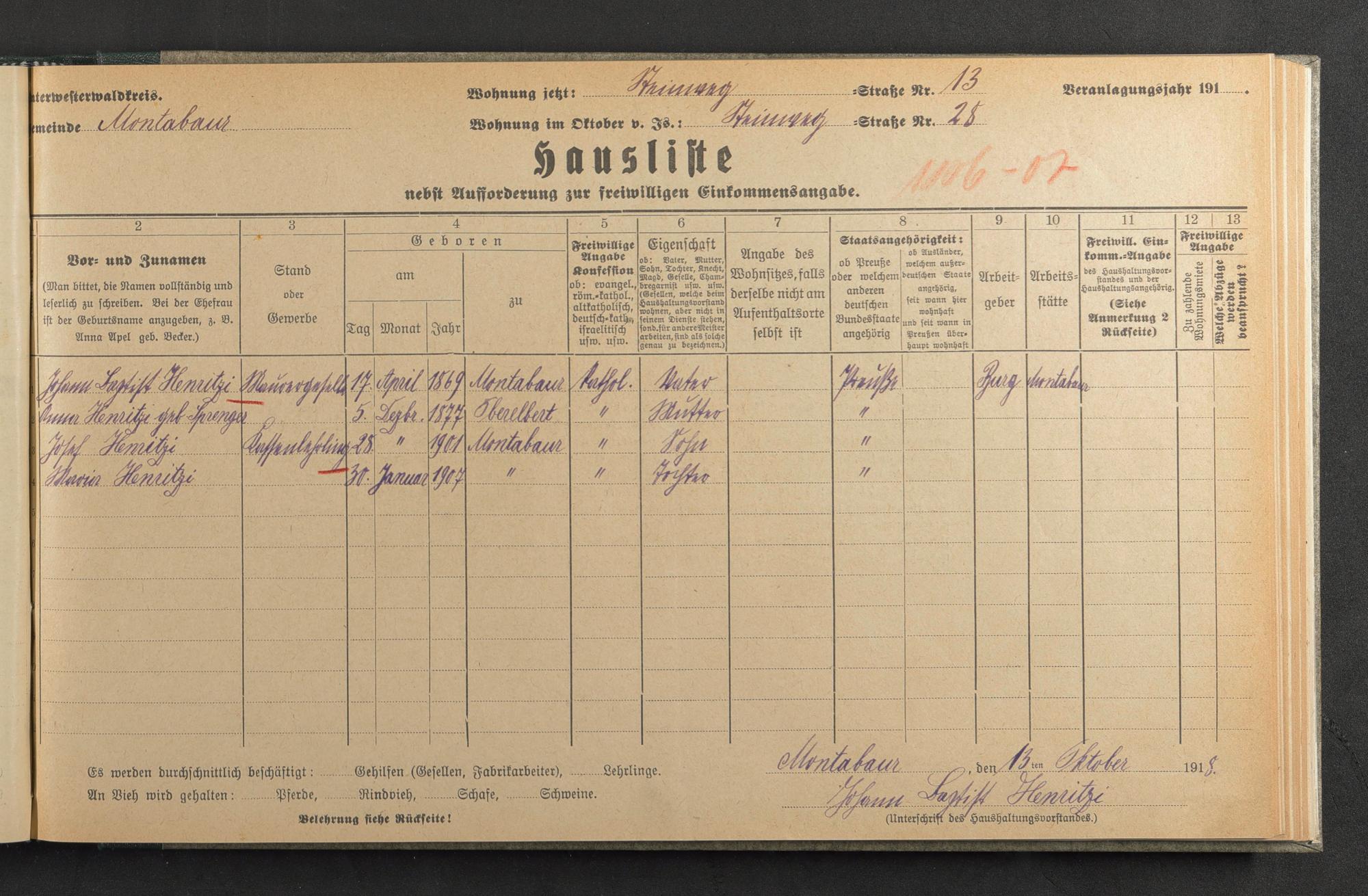 Haushaltsliste 1918, Sauertalstraße bis Werbhausgasse sowie Mühlen