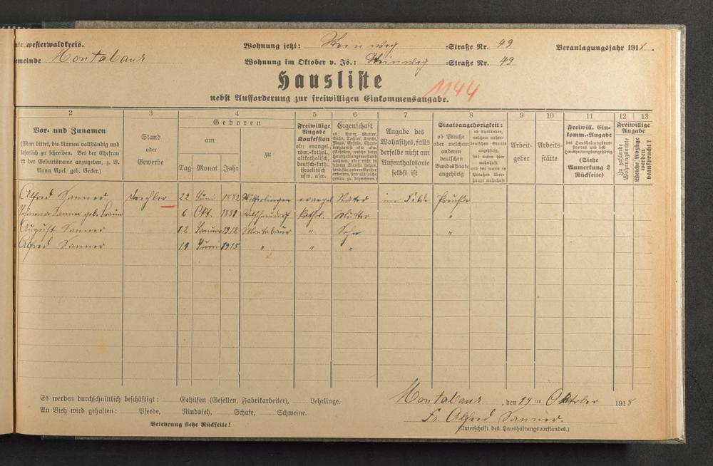 Haushaltsliste 1918, Sauertalstraße bis Werbhausgasse sowie Mühlen