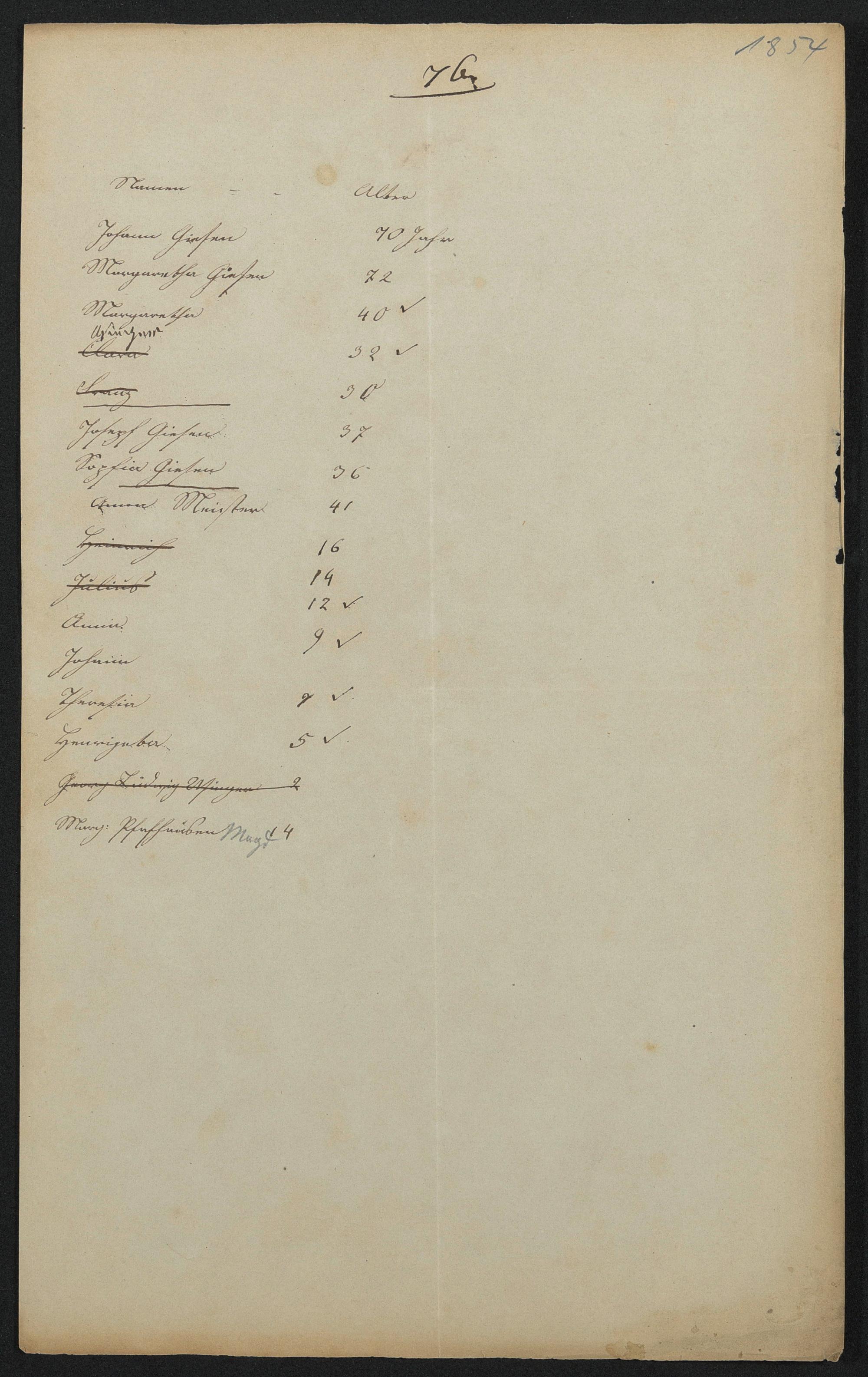 Giesen, Johann Giesen, Margaretha Giesen, Maragretha Giesen, [...] Giesen, Joseph Giesen, Sophia Meister, Anna Meister, Anna Meister, Johann Meister, Theresia Meister, Henrijeta Pfaffhausen, Marg.
