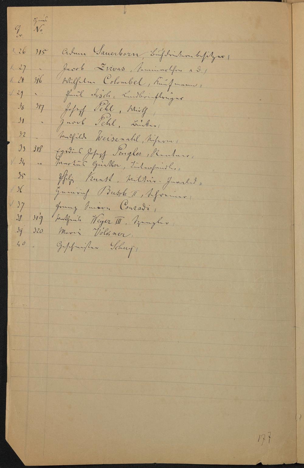 Sauerborn, Adam Zirvas, Jacob Colombel, Wilhelm Jösch, Paul Pehl, Joseph Pehl, Jacob Weisenahl, Mathilde Pingler, Aegidius Joseph Günther, Innotus[?] Kunst, Philip Busch, Heinrich, II. Conradi, Franz Simon Weyer, [...]hias III. Völkner [?], Maria Schuy, [...]