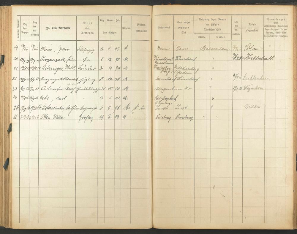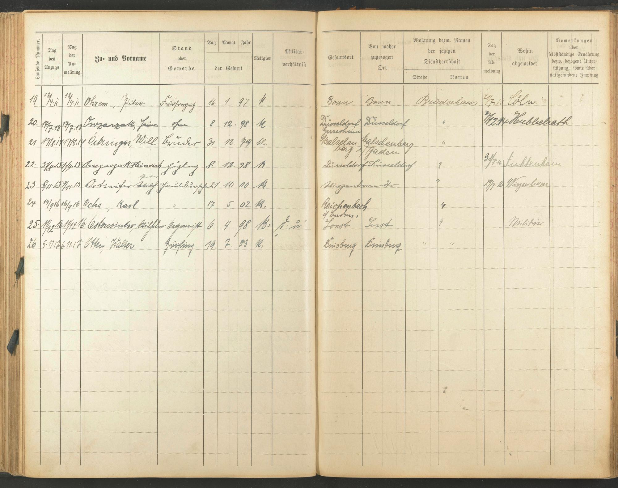 Ohren, Peter Owzarzak, Heinrich Östringen, Wilhelm Onezwzak, Heinrich Ortseifer, Peter Ochs, Karl Osterwinter, Wilhelm Otten, Walter