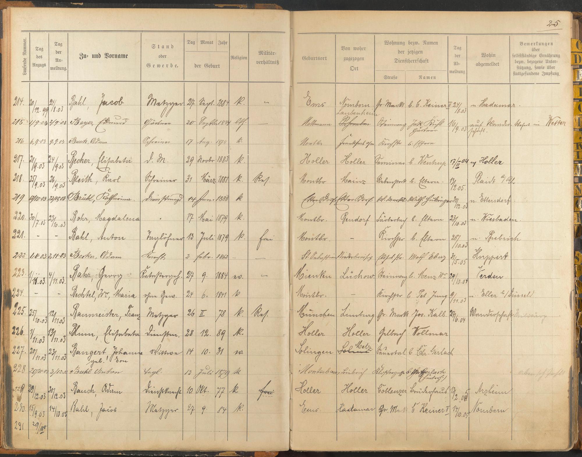 An- und Abmelderegister 1898-1904, Buchstaben A - E