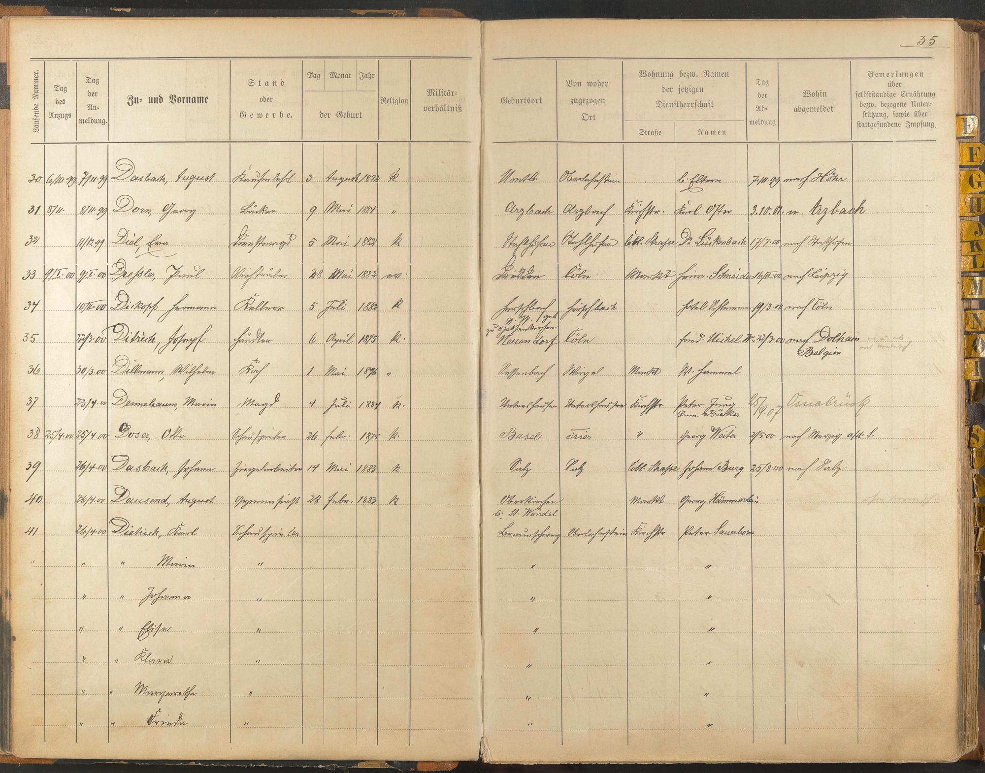 An- und Abmelderegister 1898-1904, Buchstaben A - E