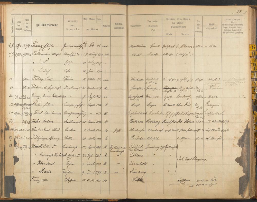 An- und Abmelderegister 1898-1904, Buchstaben F - H
