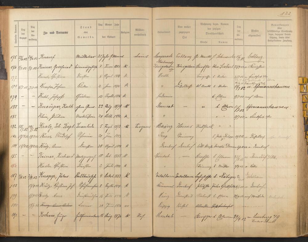 Knauf Kreiner, Gottfried Kunst, Christine Kneuper, Johann Kuhl, Joseph Kneuper, Katharina Rüter, Pauline geb. Klein Kratz, Johann Baptist Kures, Rudolph Krätz, Anna Keiner, Richard Kaster, Christina Knopp, Peter Krätz, Christian Johann Kratz, Anna Kochem, Hugo