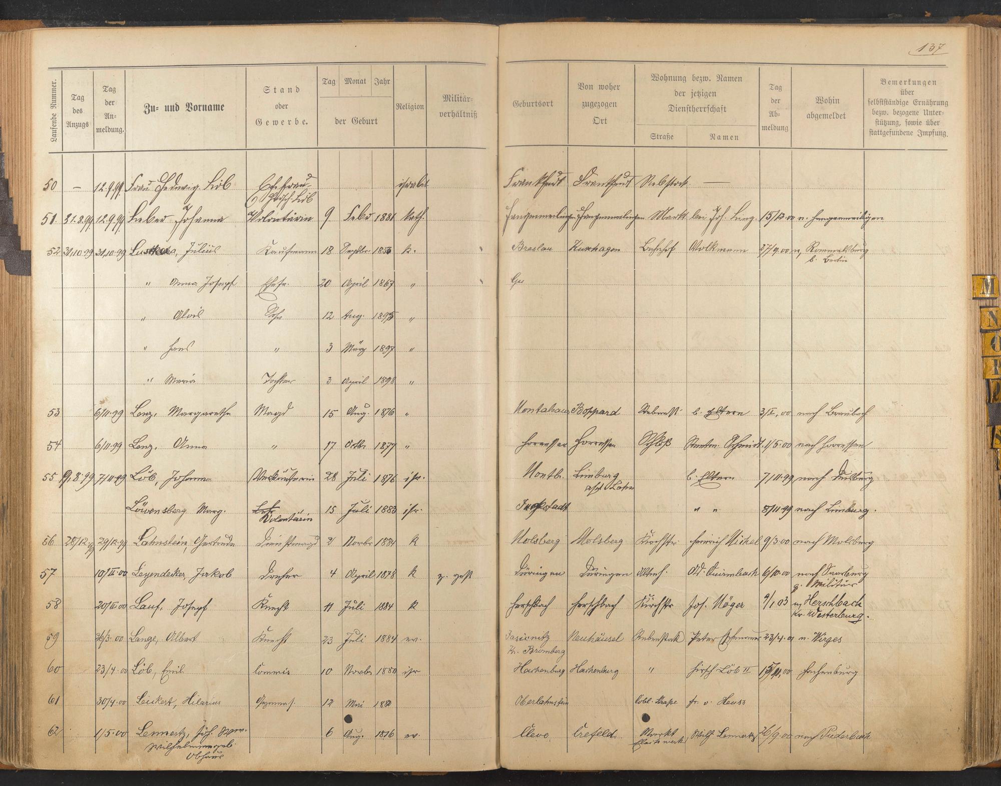 Löb, Hedwig Luber, Johanna Luscka, Julius Luscka, Anna Joseph. Luscka, Alois Luscka, Hans Luscka, Maria Lenz, Margareta Lenz, Anna Löb, Johanna Löwensberg, Marg. Lahnstein, Gertrude Leyendecker, Jakob Lauf, Joseph Lange, Albert Löb, Emil Leickert, Hilarius Lennertz, Wilhelmine geb. Obhaus