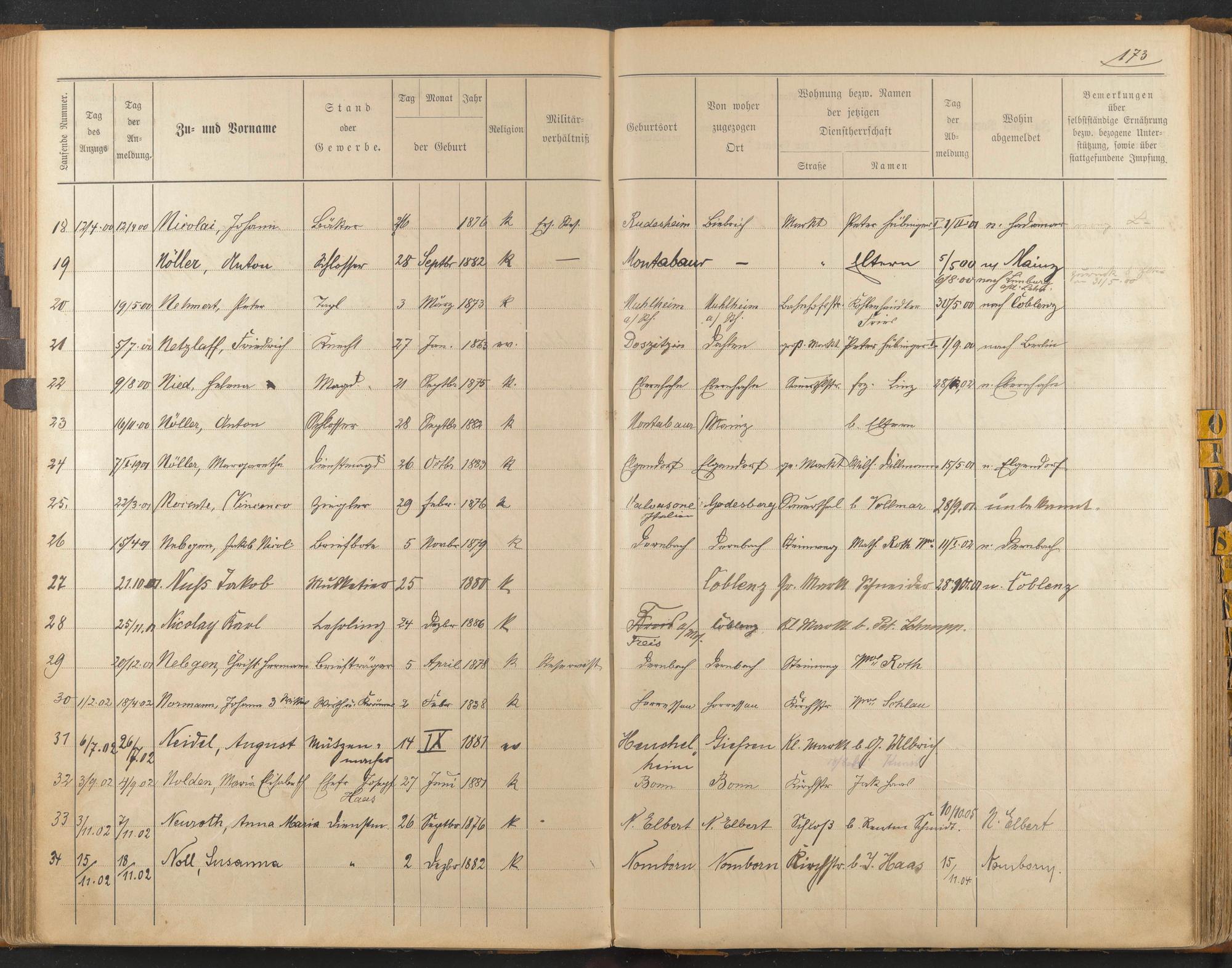 Nicolai, Johann Nöller, Anton Nehmert, Peter Netzlaff, Friedrich Nied, Helena Nöller, Anton Nöller, Margaretha Necente, Vincenco Nebgen, Jakob Nikolaus Nuß, Jakob Nicolay, Karl Nebgen, Christ. Hermann Normann, Johann Neidel, August Nolden, Maria Elisabeth Neuroth, Anna Maria Noll, Susanna