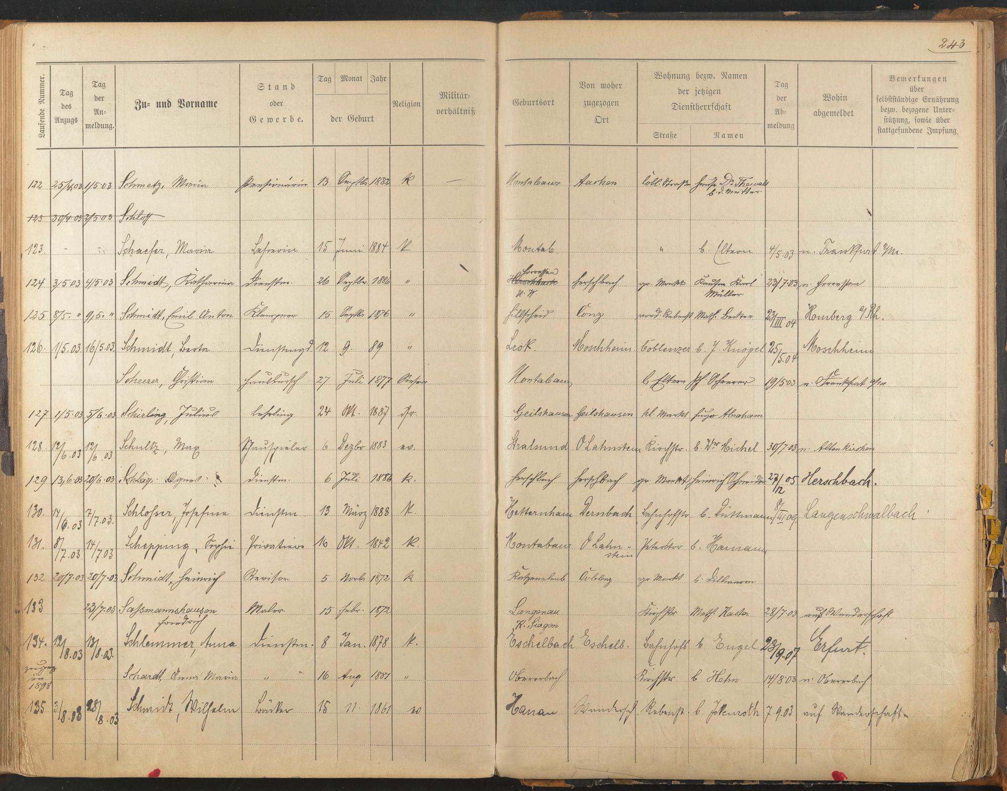 Schmetz, Maria Schaefer, Maria Schmidt, Katharina Schmidt, Emil Anton Schmidt, Berta Scheerer, Christian Schirling, Julius Schulz, Max Schlag, Agnes Schloßer, Josefine Schepping, Sophie Schmidt, Heinrich Saßmannshausen, Friedrich Schlemmer, Anna Schardt, Anna Maria Schmitz, Wilhelm