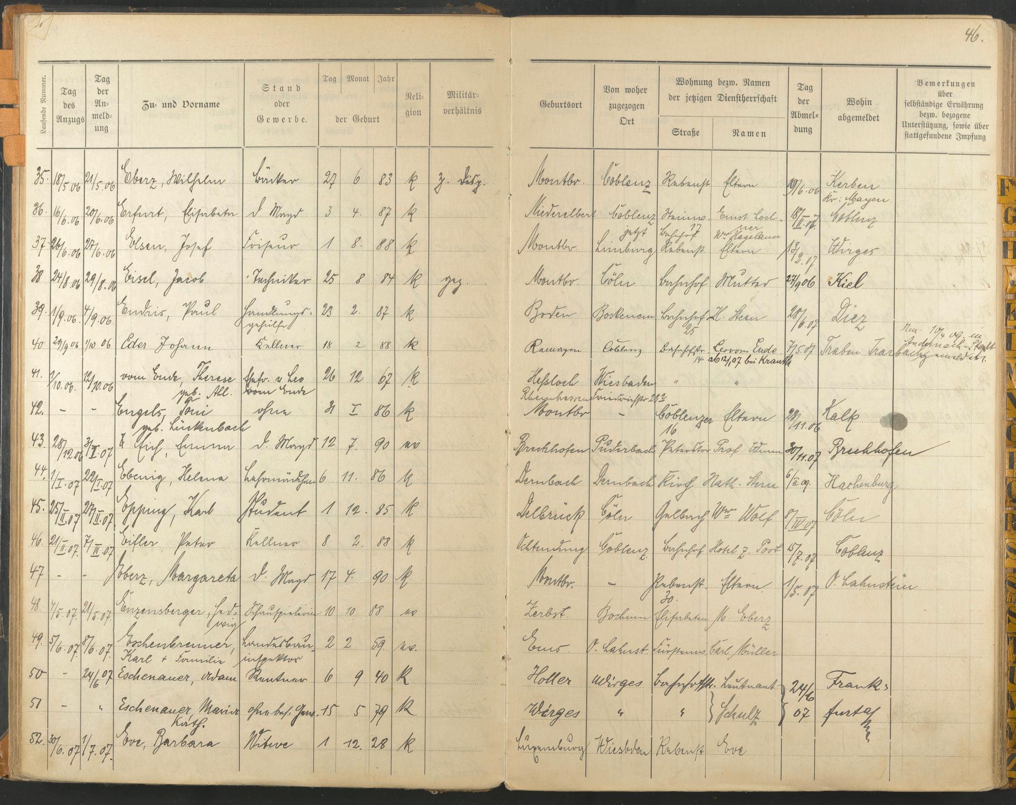 An- und Abmelderegister 1904-1907, Buchstaben A - E