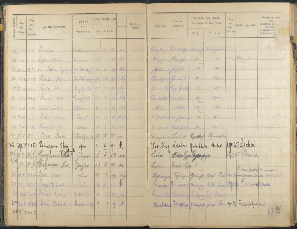 Bordüne, […] Beyer, Albert Besten, Engelbert van Bohnen, Peter Bräuer, Otto Bernard, Wal. Bröhl, Jakob Beckers, Anton Bierenfeld, Johann Biere, Karl Biergens, Maria geb. Fleck Bergmann, Rud. Bergmann, Hch. Bach, Klara Bayer, Elisabeth Bürthel, Ludwig Born, Elisabeth