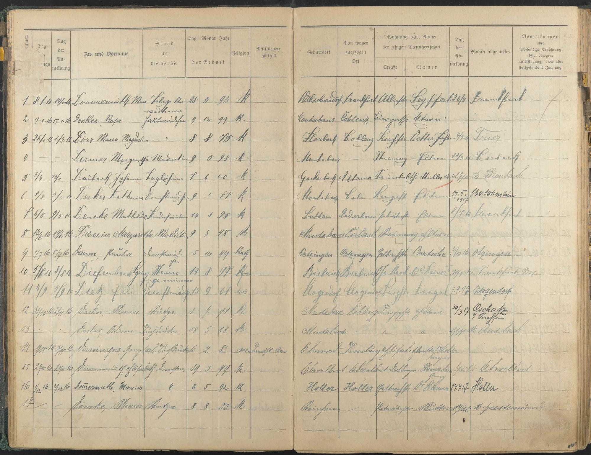 Donnermuth, Mina Decker, Rosa Dörr, Maria Magdalena Dernier, Margaretha Daubach, Johann Decker, Katharina Deneke, Mathilde Dernier, Margaretha Daum, Paula Diefenbach, Heinr. Dietz, Elli Decker, Marie Decker, Adam Dominique, Georg Karl Dommermuth, Elisabeth Dommermuth, Maria Deneke, Marie