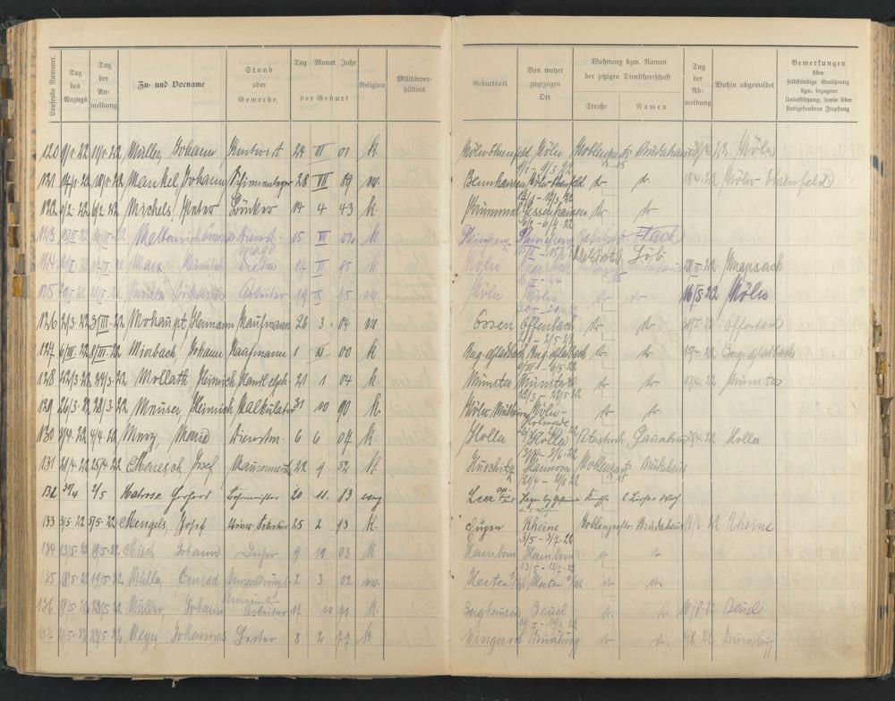 An- und Abmelderegister 1916-1927, Buchstaben M - R