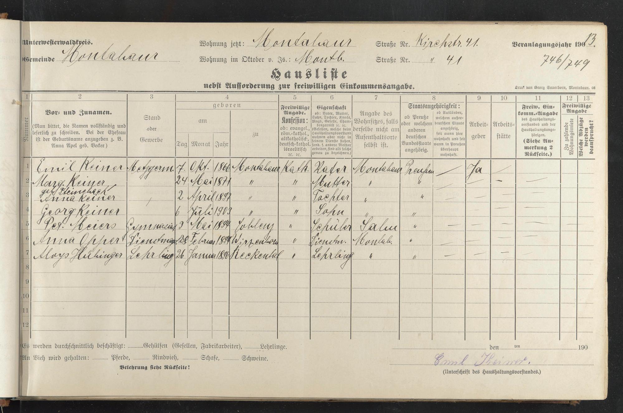 Keiner, Emil Keiner, Margaretha geb. Steinebach Keiner, Anna Keiner, Georg Meiers, Pet. Opper, Anna Hübinger, Alois