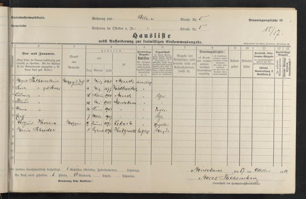 Haushaltsliste 1912/13, Coblenzer Straße bis Judengasse