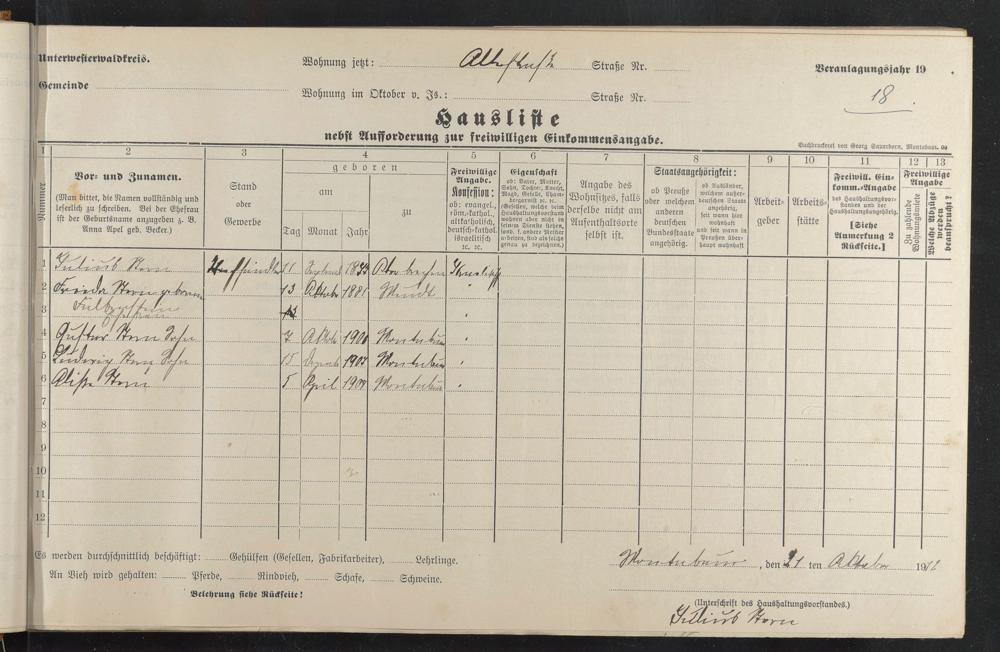 Haushaltsliste 1912 & 1913, Band I., Abt. 4 A 276