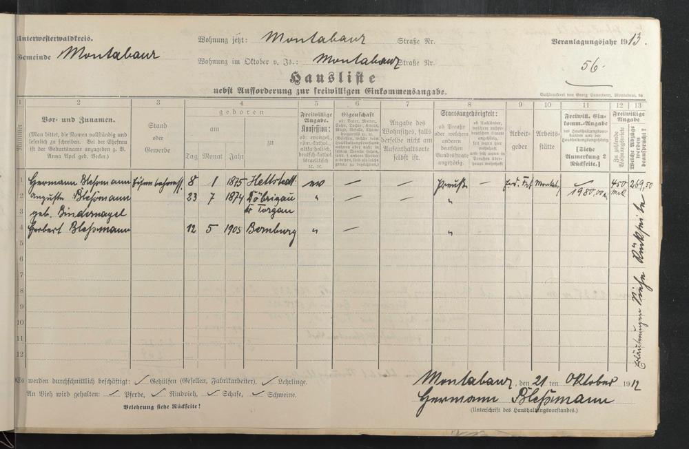 Haushaltsliste 1912 & 1913, Band I., Abt. 4 A 276