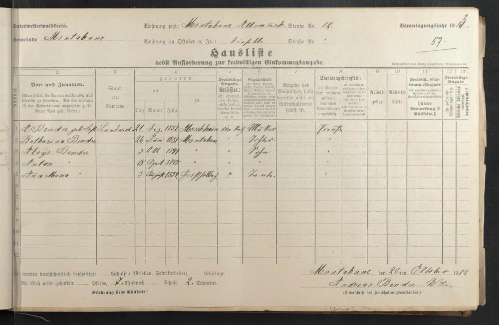 Haushaltsliste 1912 & 1913, Band I., Abt. 4 A 276