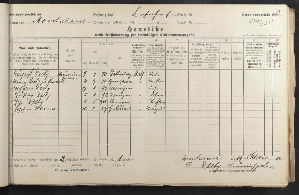Haushaltsliste 1912 & 1913, Band I., Abt. 4 A 276