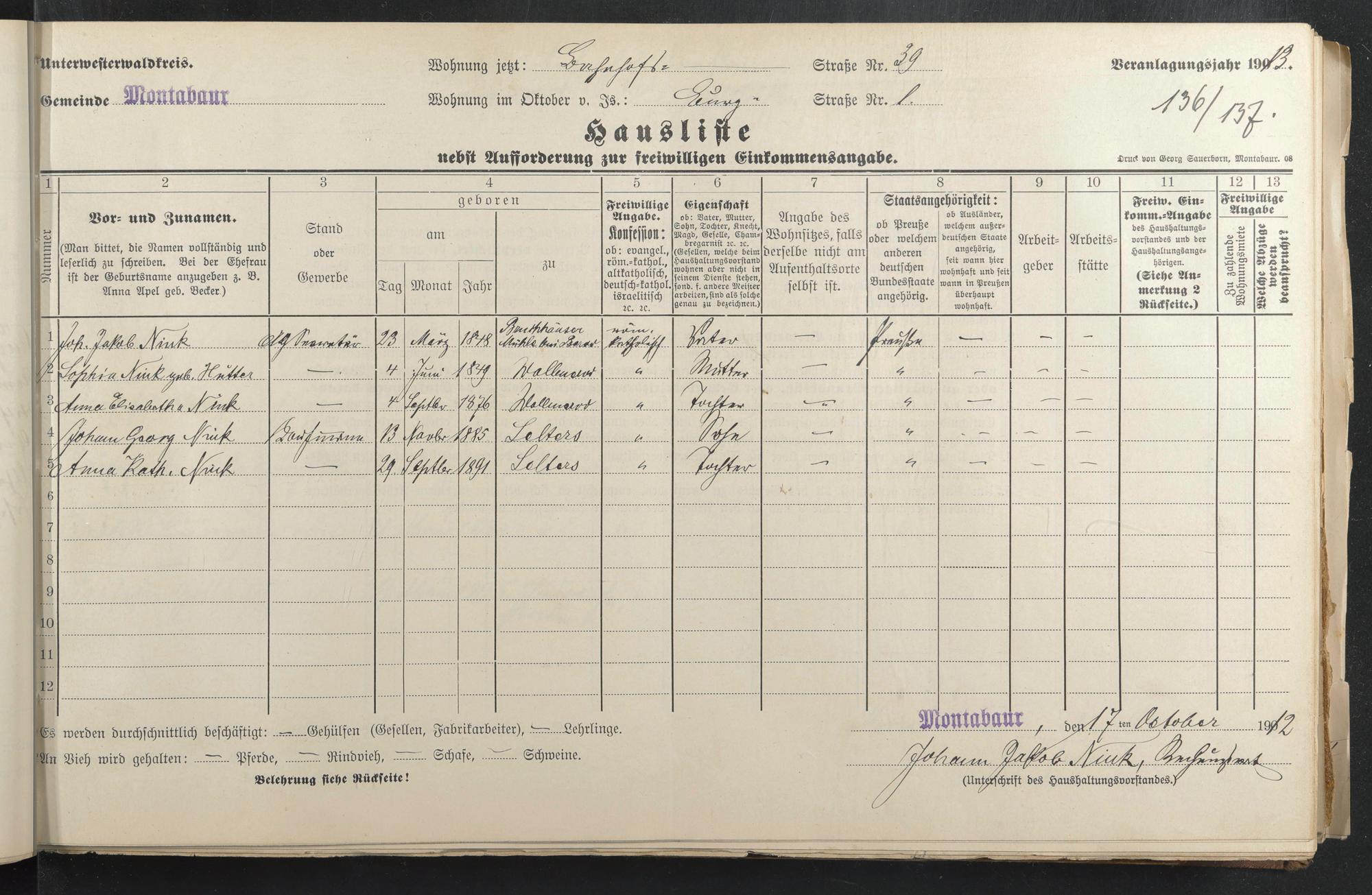 Haushaltsliste 1912 & 1913, Band I., Abt. 4 A 276