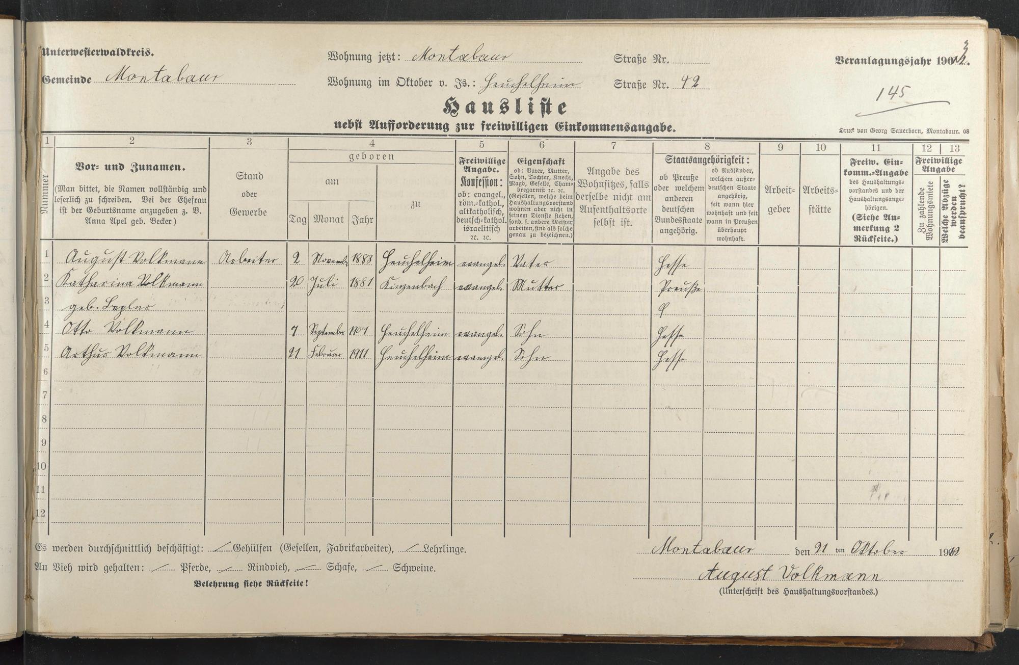 Haushaltsliste 1912 & 1913, Band I., Abt. 4 A 276