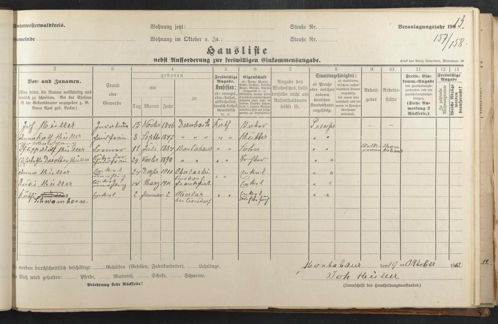 Müller, Johann Müller, Anna Kath. geb. Marschang Müller, Adolf Müller, Elisabetha Dorothea Müller, Anna Müller, Rudi Schwamborn, Kath.