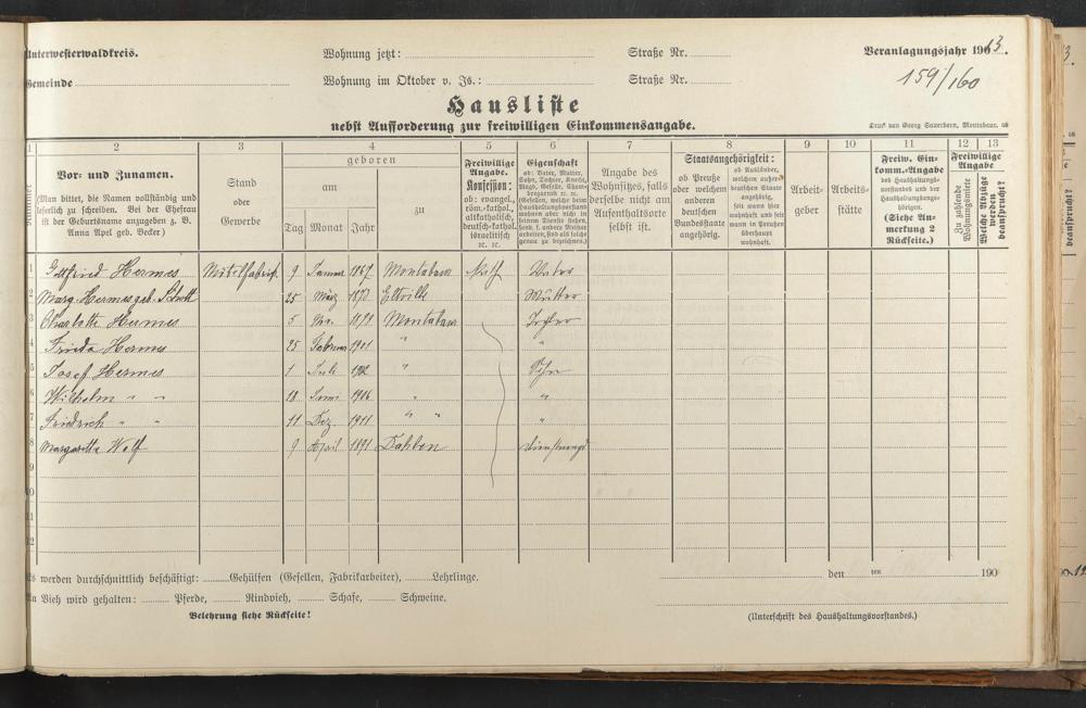 Hermes, Gottfried Hermes, Margaretha geb. Schott Hermes, Charlotte Hermes, Frieda Hermes, Josef Hermes, Wilhelm Hermes, Friedrich Hermann Wolf, Margareta