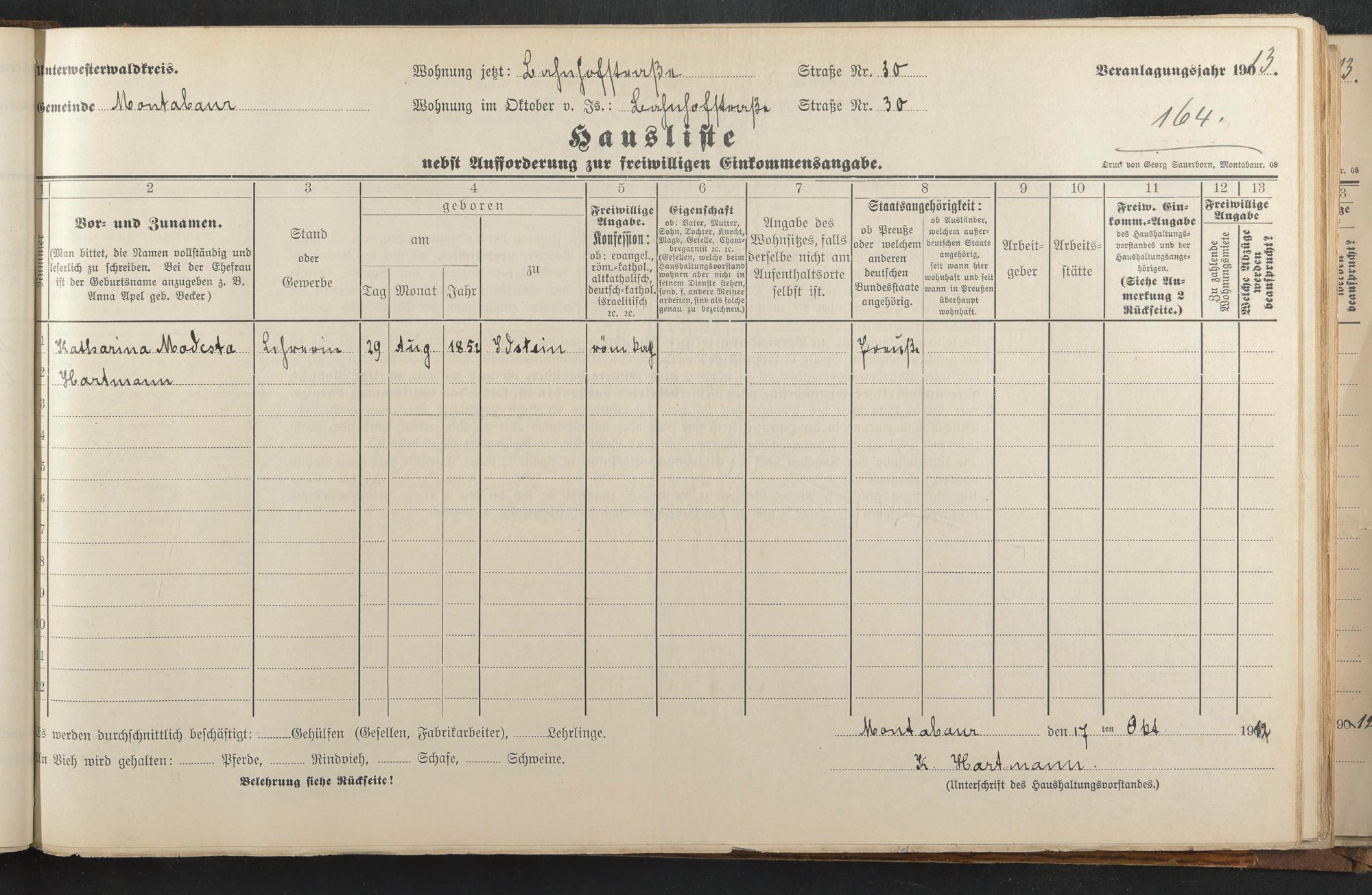 Haushaltsliste 1912 & 1913, Band I., Abt. 4 A 276