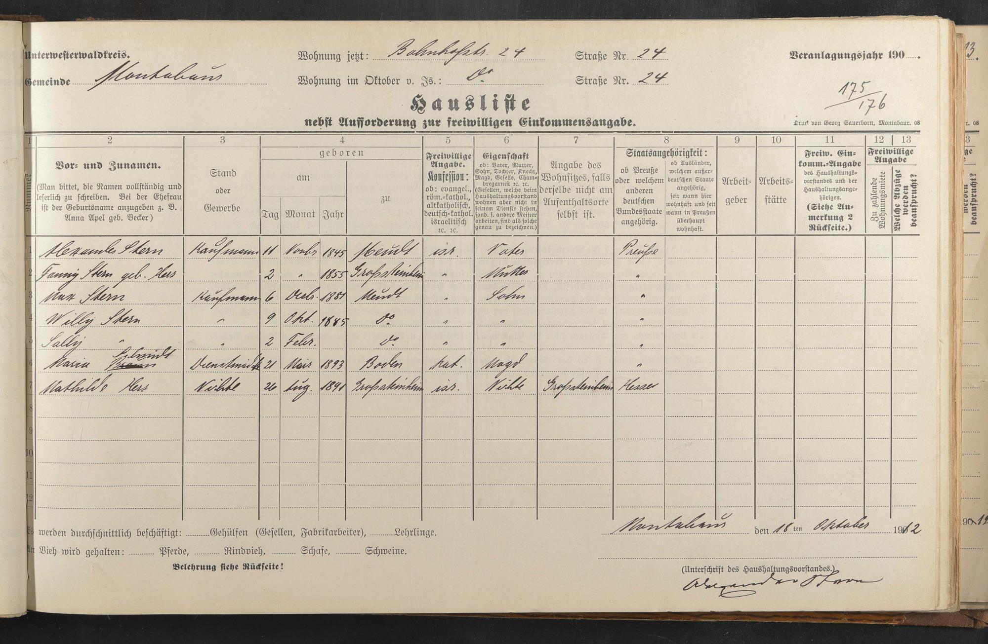 Stern, Alexander Stern, Fanny geb. Herz Stern, Max Stern, Willi Stern, Sally Schmidt, Maria Herz, Mathilde