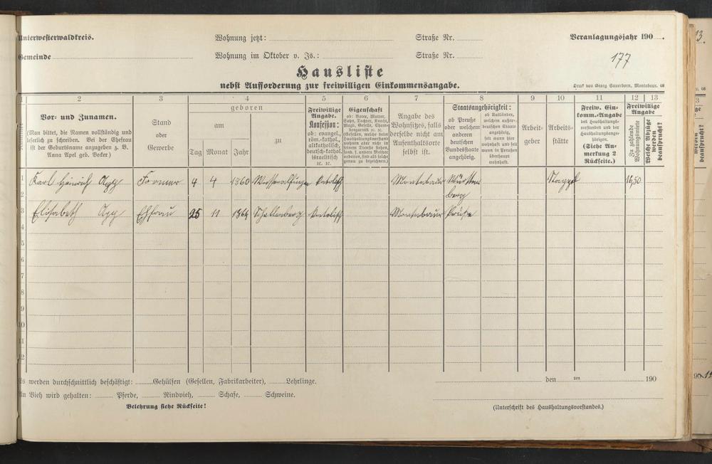 Haushaltsliste 1912 & 1913, Band I., Abt. 4 A 276