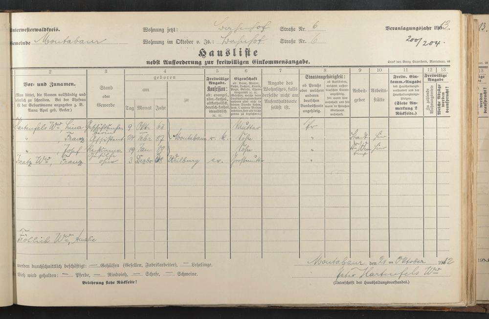 Hartenfels, Lina geb. Kratz Hartenfels, Franz Hartenfels, Josef Kratz, Augusta geb. Weilbächer Fröhlich, Amalie