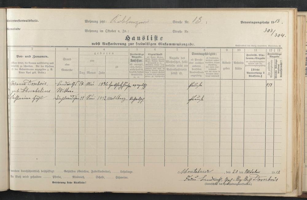 Haushaltsliste 1912 & 1913, Band I., Abt. 4 A 276