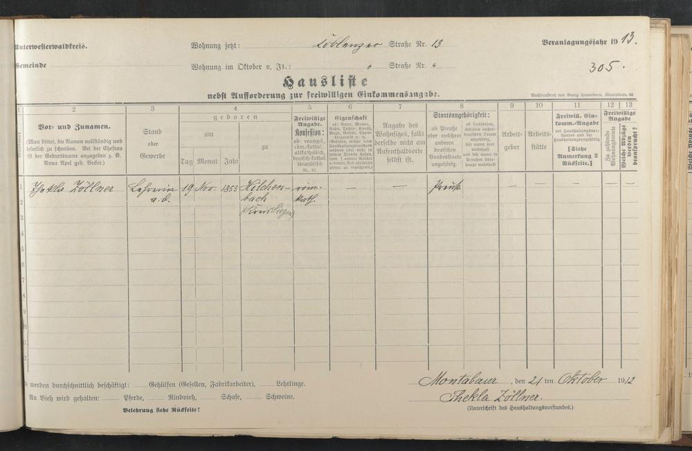 Haushaltsliste 1912 & 1913, Band I., Abt. 4 A 276