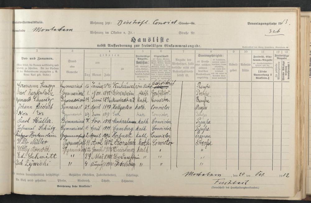 Knopp, Hermann Kastenholz, Karl Schmitz, Bernhard Reichert, Johann Etz, Alois Müller, Karl Schütz, Johannes Hartenstein, Kaspar Müller, Wilhelm Arnold, Wilhelm Schmitt, Eduard Zywicki, Joh.