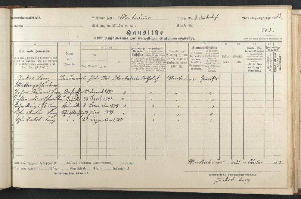 Haushaltsliste 1912 & 1913, Band I., Abt. 4 A 276