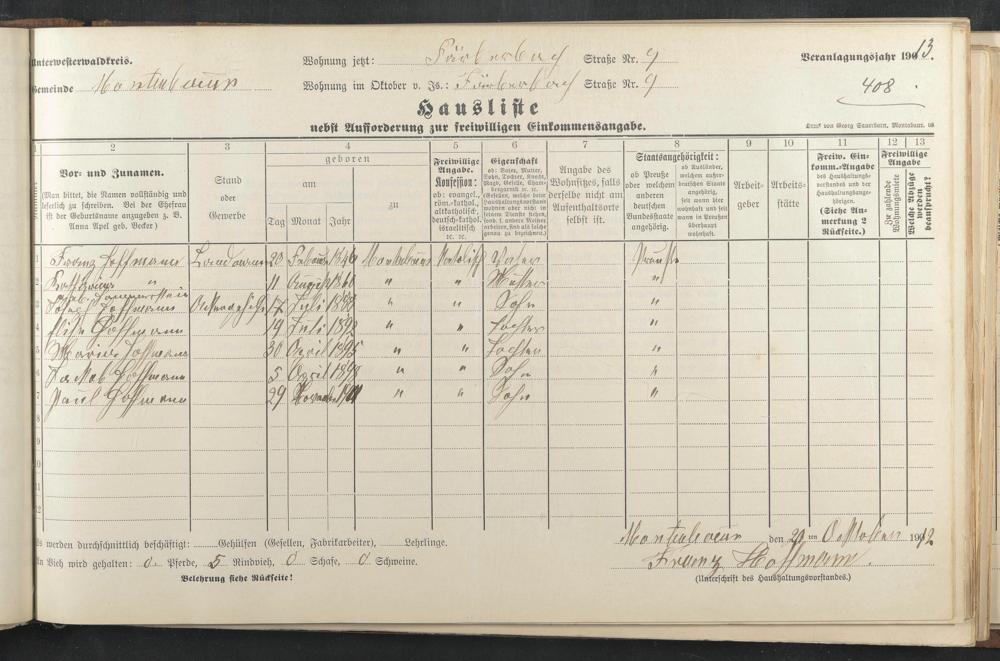 Hoffmann, Franz Hoffmann, Katharina geb. Hammerstein Hoffmann, Josef Hoffmann, Elisabeth Hoffmann, Maria Hoffmann, Jakob Hoffmann, Paul