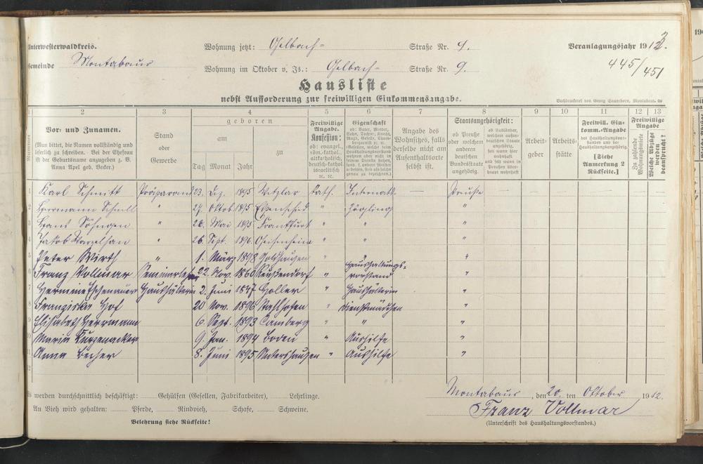 Schmitt, Karl Schnell, Hermann Söhngen, Hans Warzelhan, Jakob Wirth, Peter Vollmar, Franz Eschenauer, Hermine Hof, Franziska Herrmann, Elisabeth Kurzenacker, Maria Becher, Anna