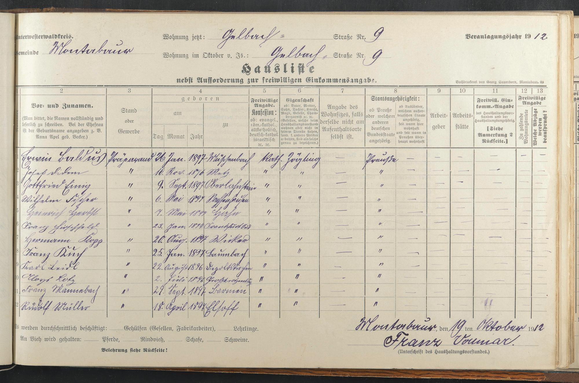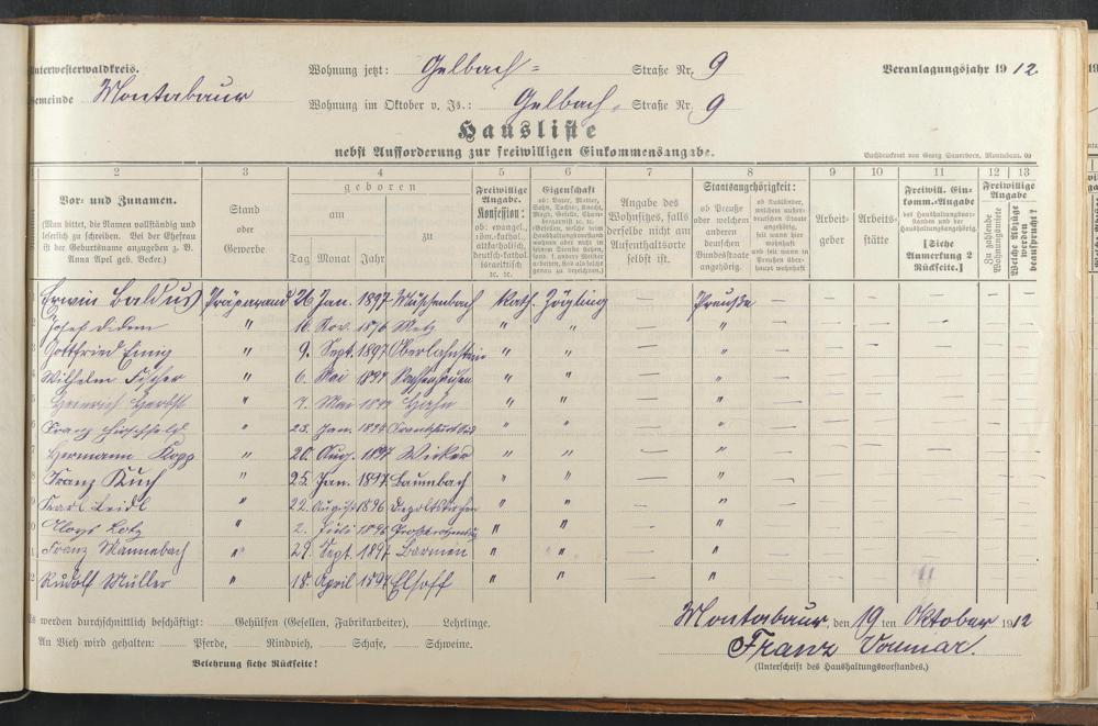 Baldus, Erwin Didem, Joseph Einig, Gottfried Fischer, Wilhelm Herbst, Heinrich Hirschfeld, Franz Kopp, Hermann Kuch, Franz Seidl, Karl Lotz, Aloys Mannebach, Franz Müller, Rudolph
