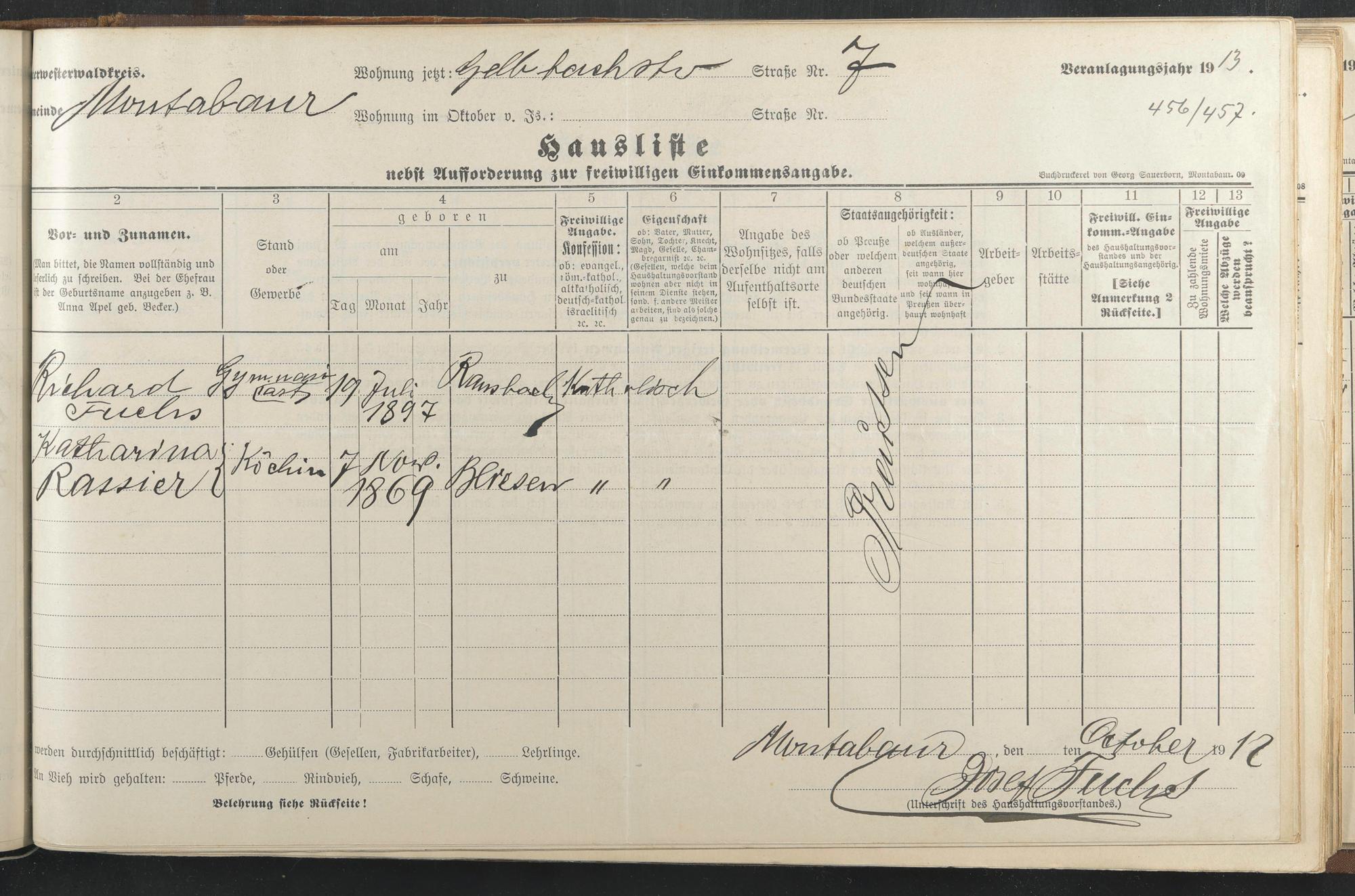 Haushaltsliste 1912 & 1913, Band I., Abt. 4 A 276