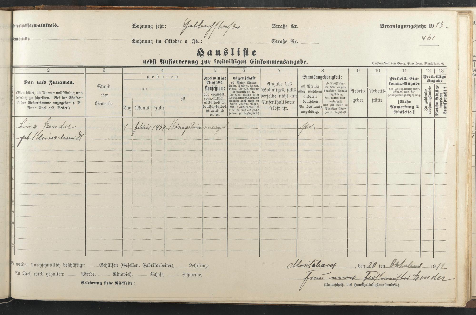 Haushaltsliste 1912 & 1913, Band I., Abt. 4 A 276
