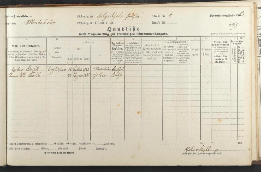 Haushaltsliste 1912 & 1913, Band I., Abt. 4 A 276