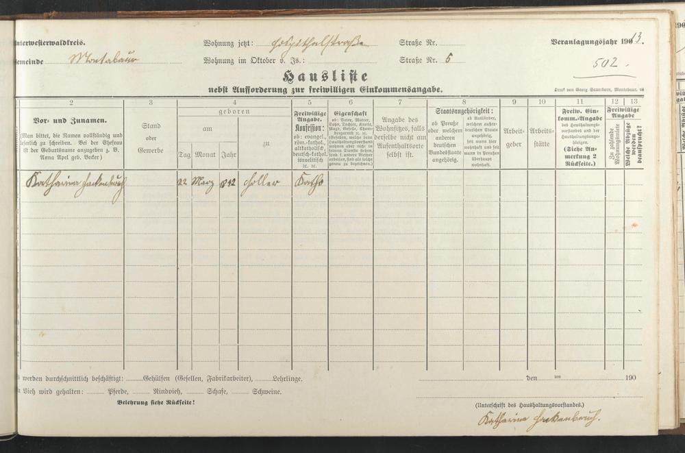 Haushaltsliste 1912 & 1913, Band I., Abt. 4 A 276