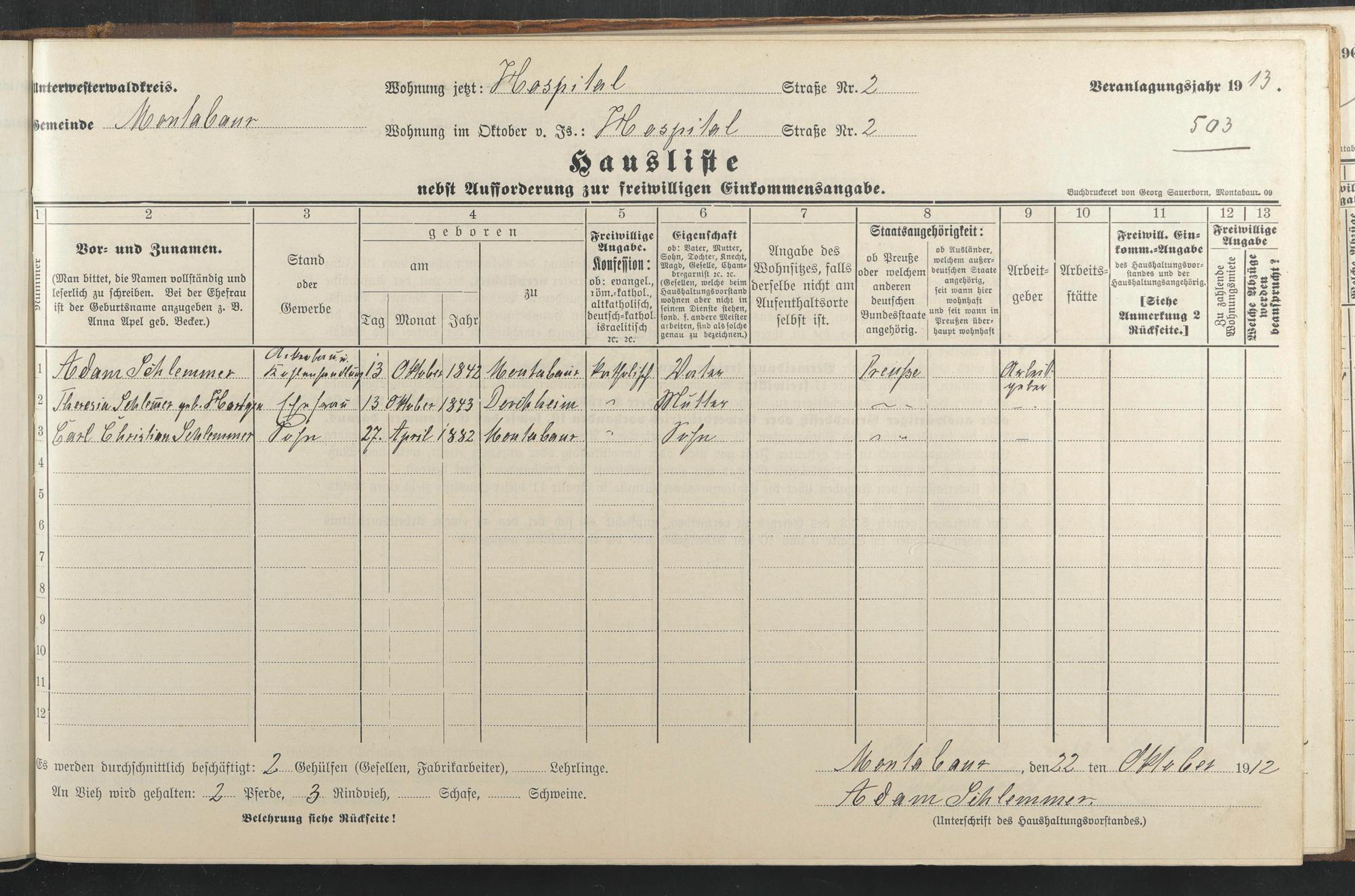Haushaltsliste 1912 & 1913, Band I., Abt. 4 A 276