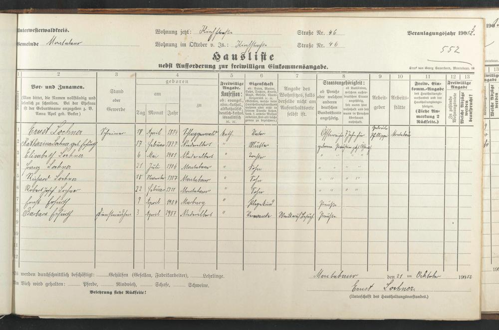 Lochner, Ernst Lochner, Katharina geb. Erfurth Lochner, Elisabeth Lochner, Franz Lochner, Richard Lochner, Robert Josef Erfurth, Ernst Erfurth, Barbara