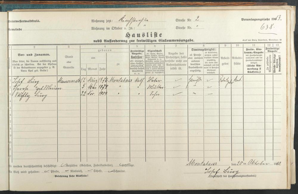 Haushaltsliste 1912 & 1913, Band I., Abt. 4 A 276