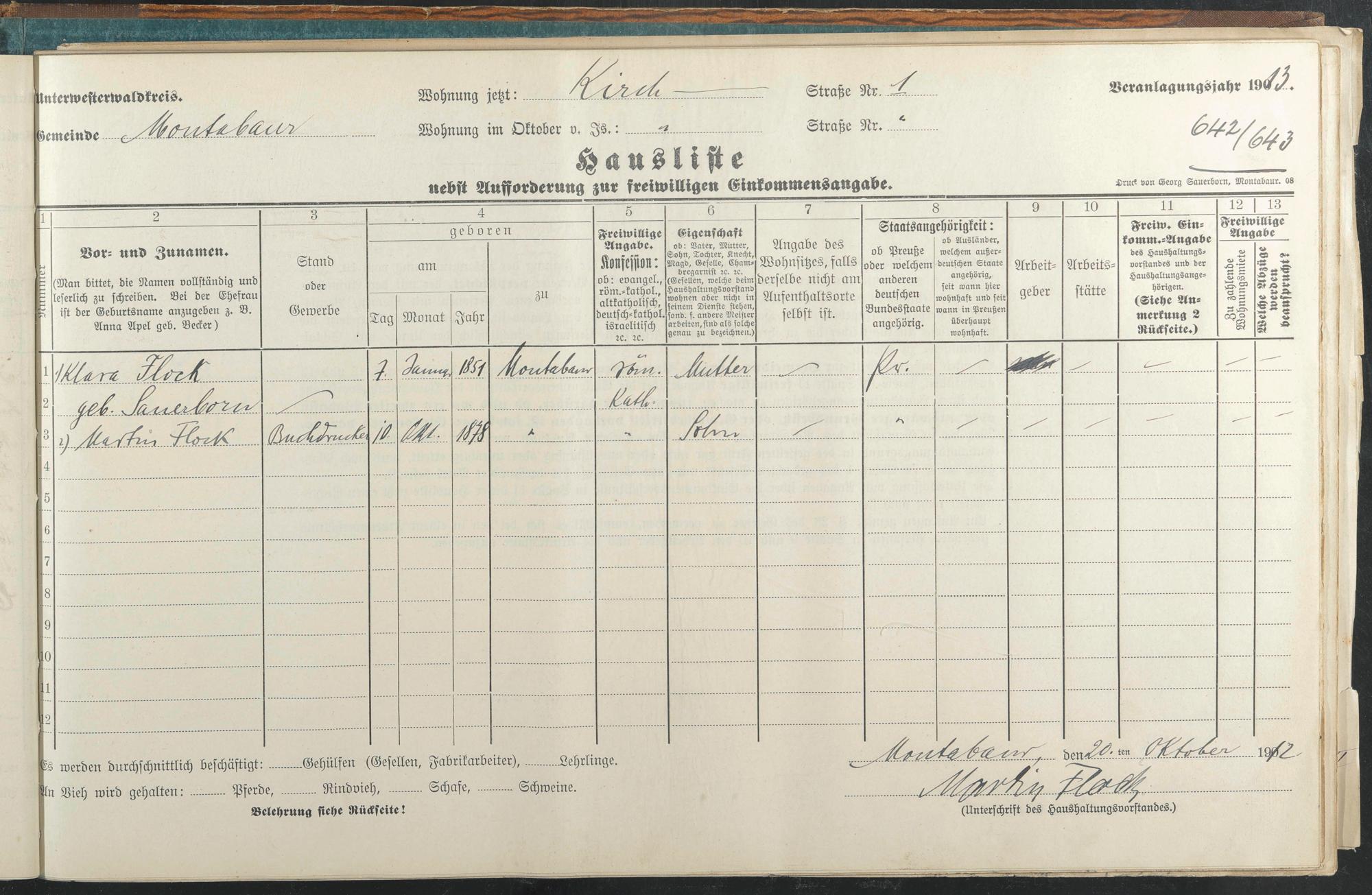 Haushaltsliste 1912/13, Kirchstraße bis Markt