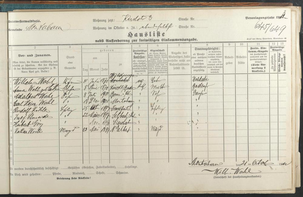 Wahl, Wilhelm Wahl, Anna geb. Leuthner Wahl, Adalbert Wahl, Karl Heinz Köhler, Rudolf Schneider, Josef Görg, Hubert Wick, Katharina