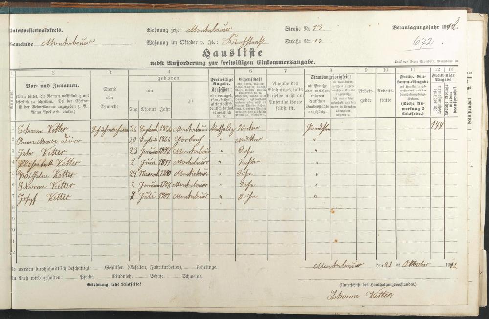Vetter, Johann Vetter, Anna Maria geb. Dörr Vetter, Peter Theodor Vetter, Elisabeth Vetter, Wilhelm Vetter, Johann 2. Vetter, Joseph