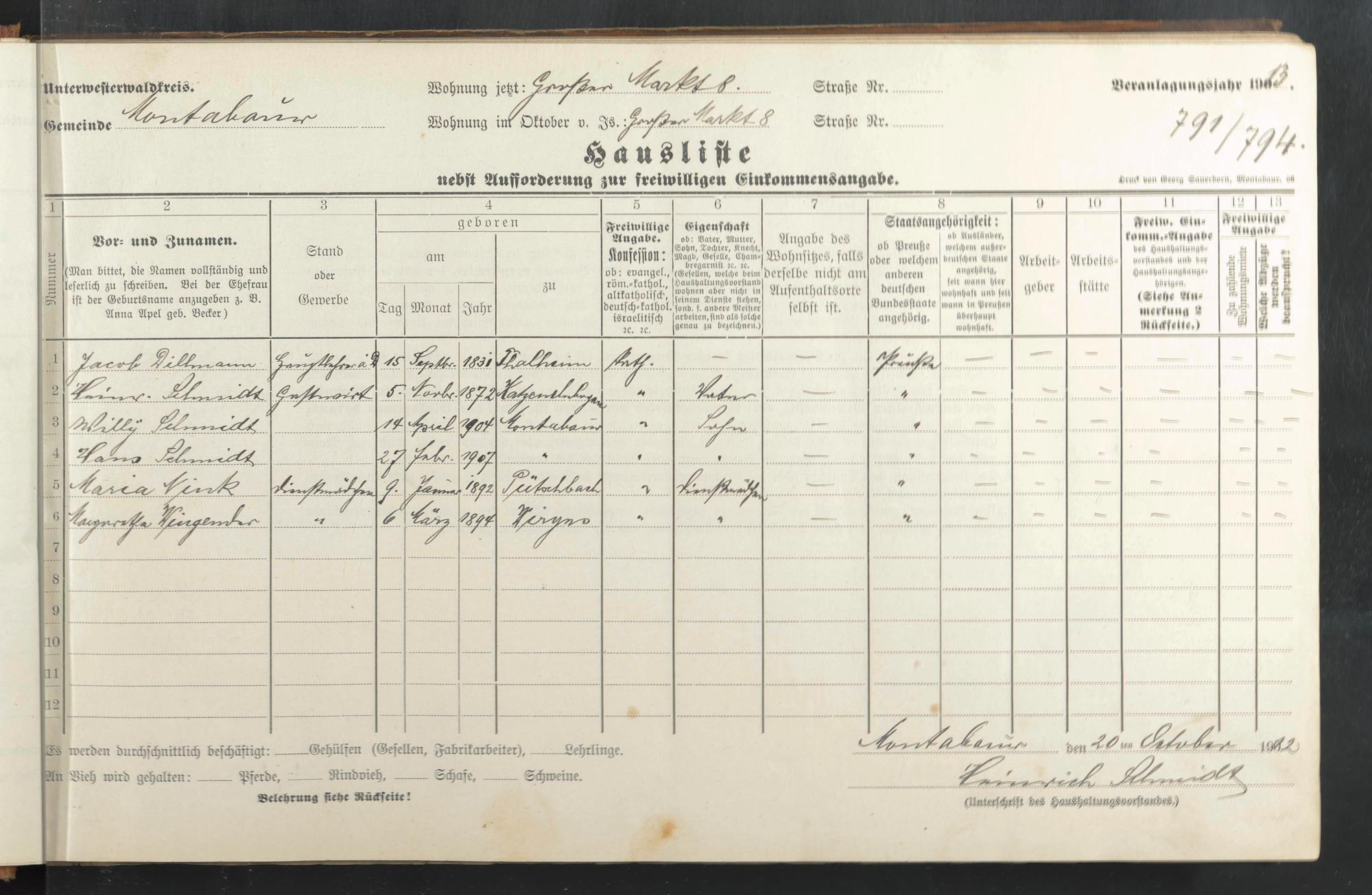 Haushaltsliste 1912/13, Kirchstraße bis Markt