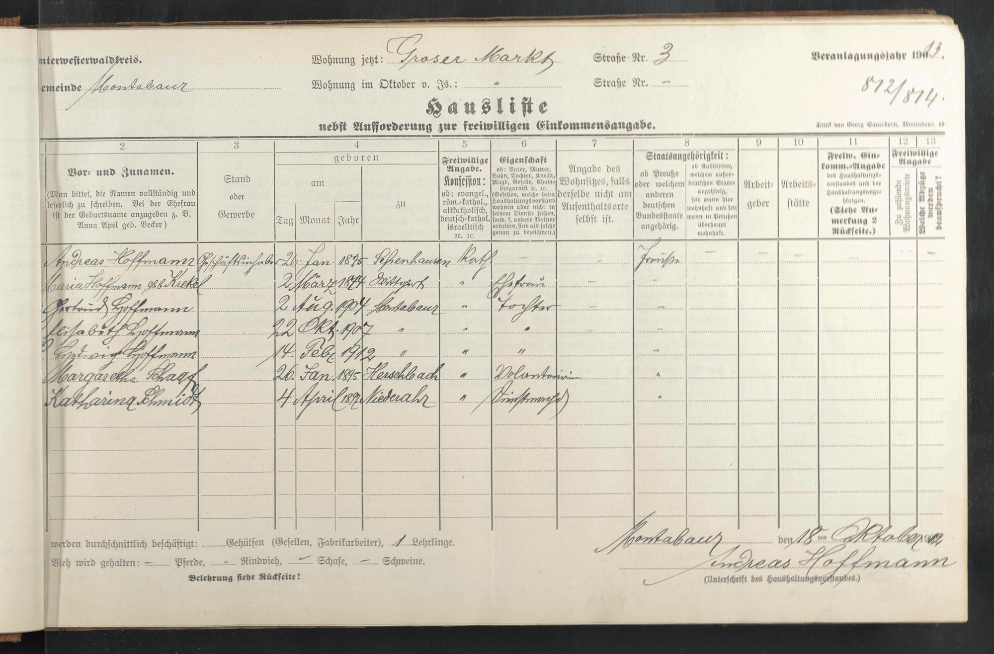 Haushaltsliste 1912/13, Kirchstraße bis Markt